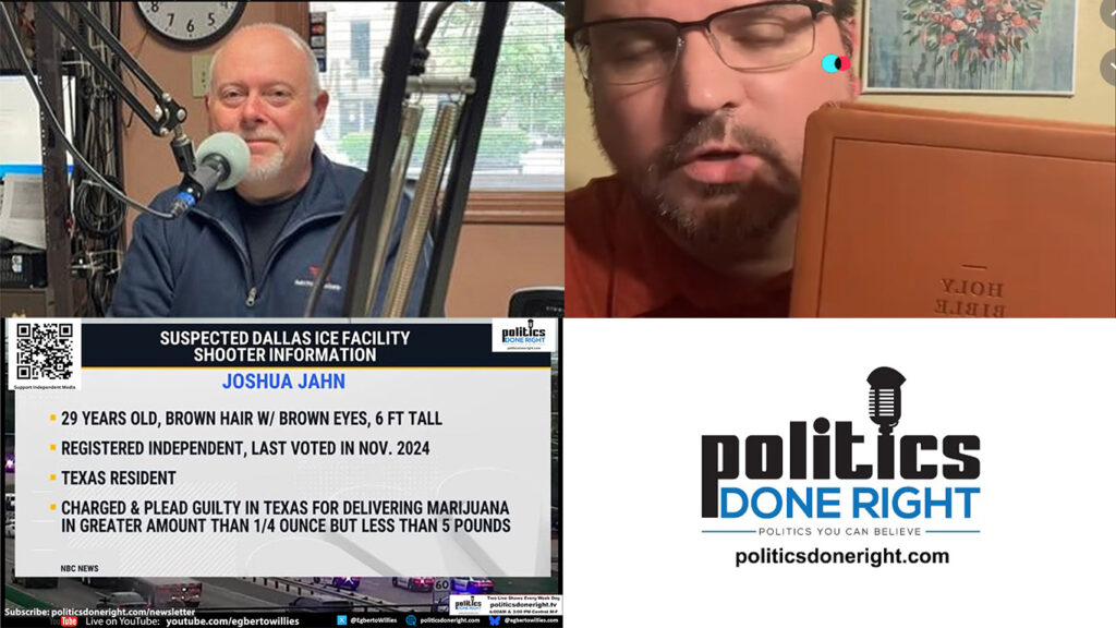 Explore media spin after the Dallas ICE shooting, Oklahoma’s Bible mandate, and Neil Aquino’s fight for democracy in this powerful radio show.