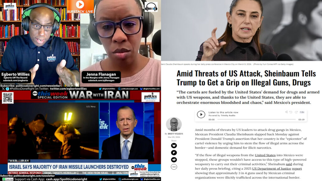 WBAI panel challenges the legality of the Iran strike, Adm. Mike Mullen warns cheap drones expose U.S. military limits, and Mexico’s president blames American guns and drug demand for cartel violence.